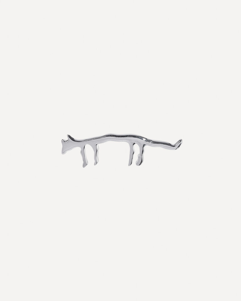 Brosje med rev – en direkte kopi av en ca. 6000 år gammel helleristning fra Storsteinen, et av de fem hovedområdene for bergkunst i Alta. Rev er et sjeldent motiv i helleristningene, og denne figuren gir et unikt innblikk i både dyrelivet og forestillingsverdenen til menneskene som levde her. Detaljene antyder at reven kan ha hatt en spesiell betydning – kanskje knyttet til jakt, mytologi eller som et totemdyr, altså et dyr man så på som veiviser, beskytter eller bærer av bestemte egenskaper.
