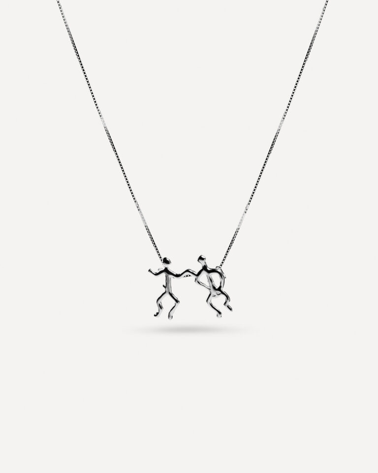 Anheng med motiv av dansende par – direkte kopi av en 6–7000 år gammel helleristning fra Jiepmaluokta (Hjemmeluft), Alta. Et livfullt og sjeldent motiv som gir et glimt av menneskelig nærhet og bevegelse slik det ble uttrykt i bergkunsten for tusenvis av år siden.