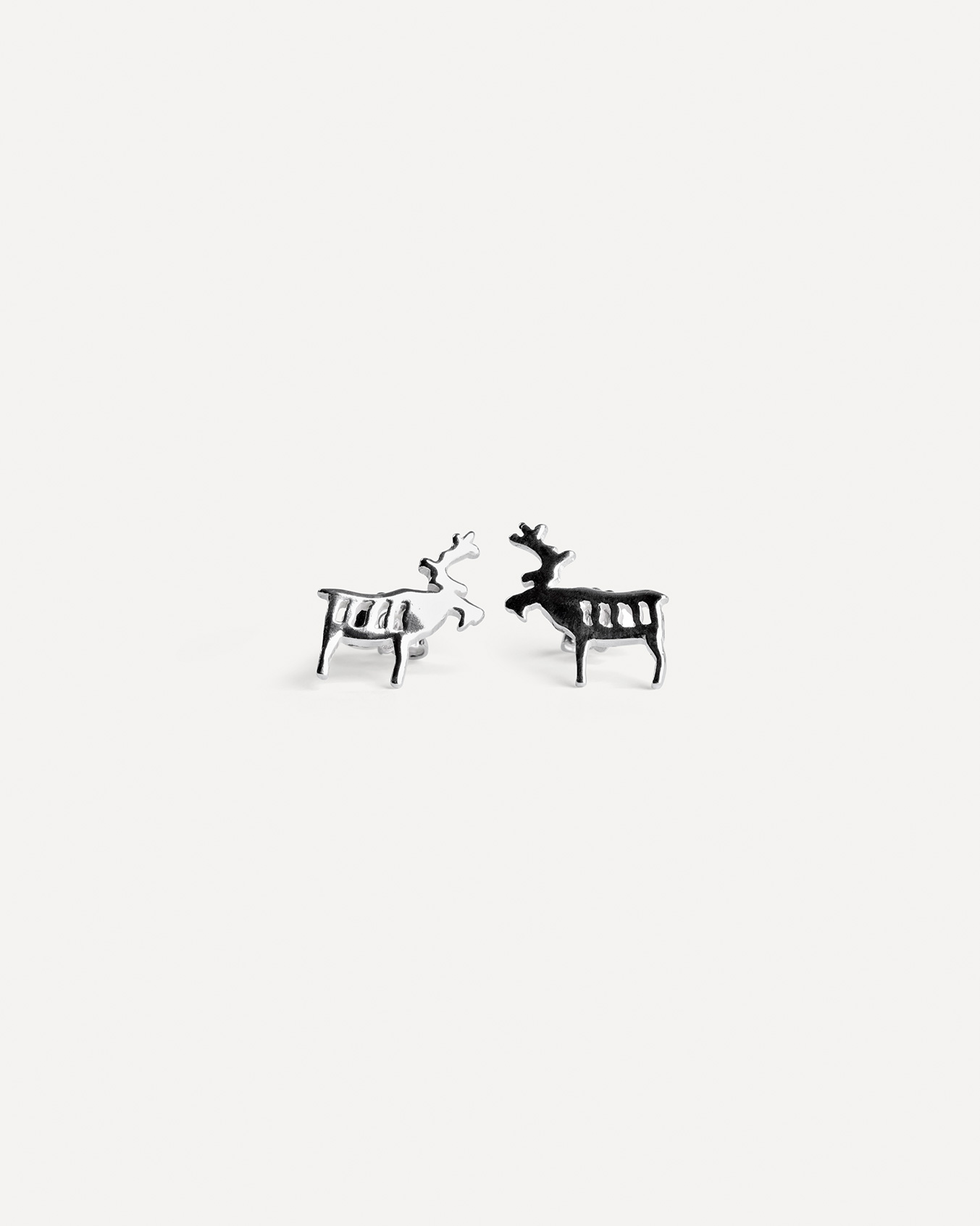 Små ørepynt med reinmotiv – direkte kopier av helleristninger fra Jiepmaluokta (Hjemmeluft), Alta, datert til 6–7000 år siden. Reinen er det hyppigst avbildede dyret blant de over 6000 registrerte figurene i Alta, noe som understreker dens sentrale rolle i datidens samfunn. Disse ørepyntene er lette og behagelige å bære, og bringer et tidløst uttrykk fra vår eldste billedkultur inn i hverdagen.