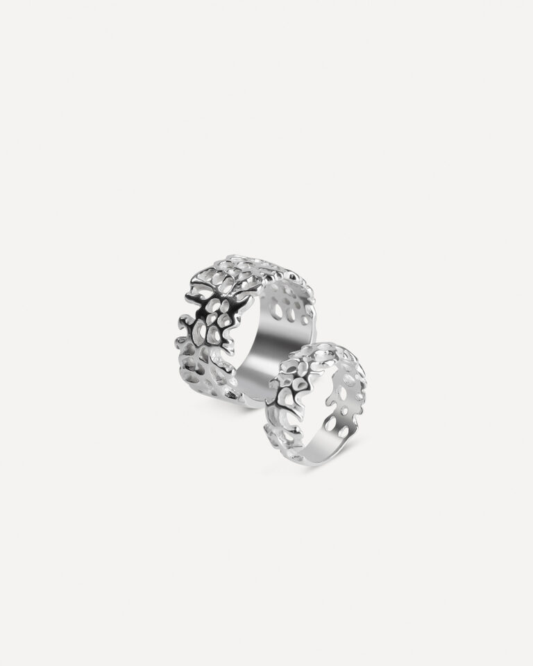 En enkel, men karakterfull ring – like fin til menn som til kvinner. Den flate, røffe formen med gjennomhullet design gir et uformelt og sterkt uttrykk. Også flott på tommelfingeren. Vi anbefaler å velge én til to størrelser større enn normalt, da ringen er bred.